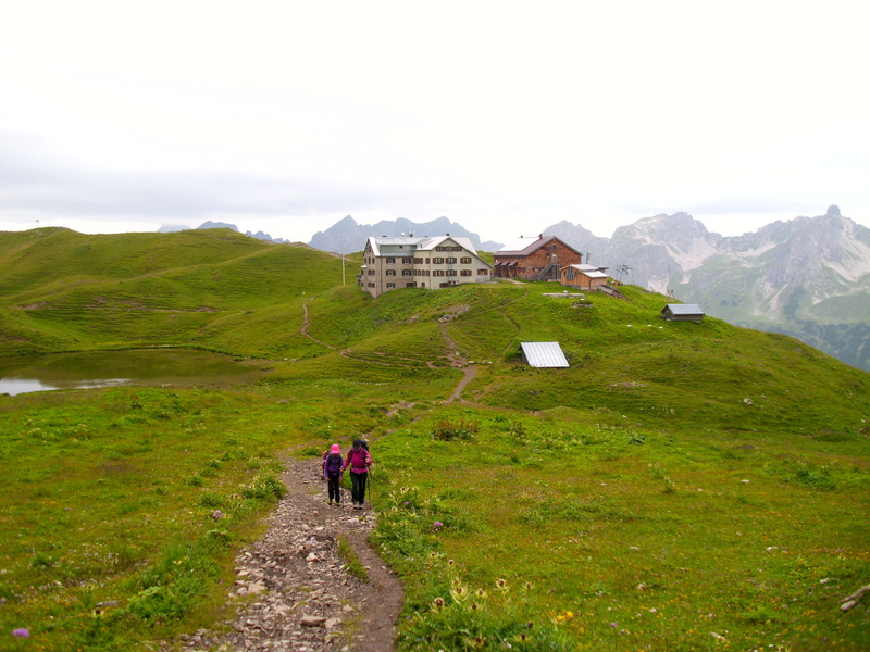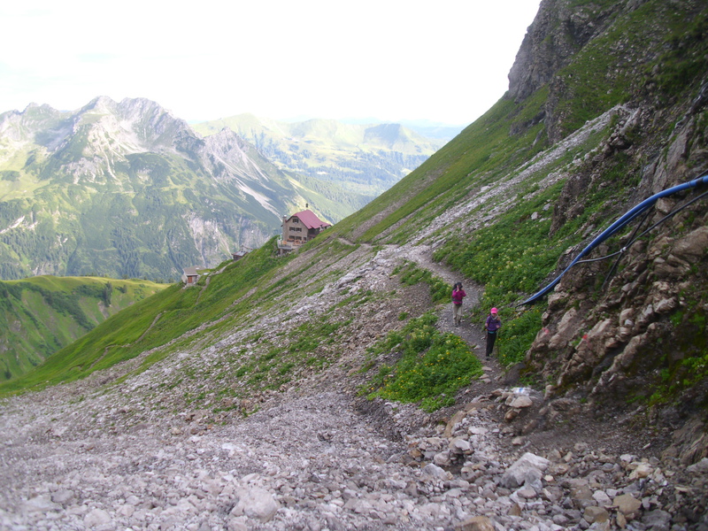 Der Start in den fünften Etappentag war uns bekannt. Wer am Vortag 500 Hm runtergeht, muss sie am anderen Morgen wieder rauf. Vom Waltenberger Haus geht es für uns also hoch zur