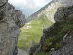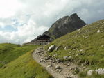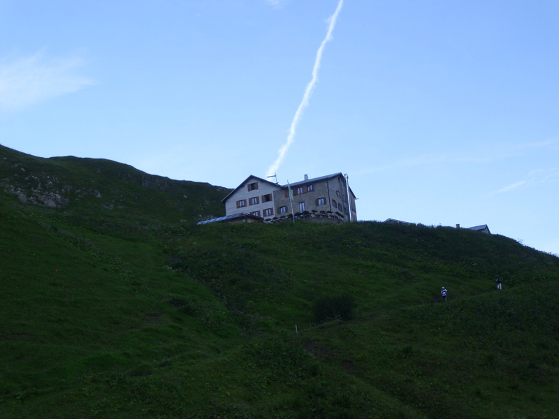 Nun geht es auf dem Krumbacher Höhenweg (446) weiter. Bis zur verfallenen Kühgundalpe ein Spaziergang, doch am Ende geht es hinauf zur Hütte schon recht steil, als Einstiegsetappe genau richtig.