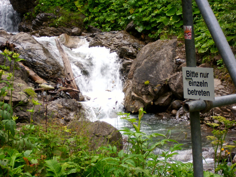 Talwärts. Noch von der Sonne begleitet geht es von der Kemptner Hütte durch den Sperrbachtobel (Wanderweg 438) hinunter. Unzählige kleine