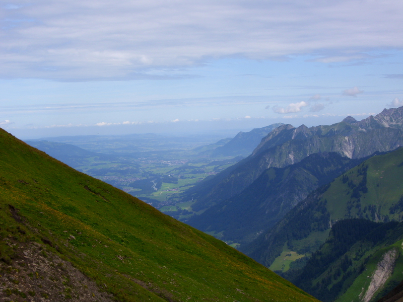 Unsere erste Etappe führt uns von der Kanzelwand zur Fiderepasshütte. Mit dem Bus geht es ersteinmal von Oberstdorf ins Kleinwalsertal und in Riezlern mit der Kanzelwandbahn hinauf. Um uns ein wenig auf die kommenden Tage einzustimmen gehen wir nicht auf direktem Weg zum Gipfelkreuz auf 2.058 m, sondern nehmen den Weg über den Walser Klettersteig. Von hier aus genießen wir einen gipfelreichen Rundumblick.