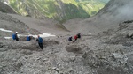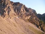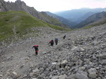Vor dem Bockkarkopf gehen wir den Notabstieg an der Socktalscharte. Kein Weg auszumachen. Die Markierungen verstreut. Hätten wir es vorher gewusst ... Unwirtlich ging es hoch und nun 500 Hm, jeder