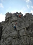 Nun geht es weiter über Leitern, vertikal und horizontal, und vielfach seilversichert.