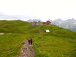 Über den Schrofenpaß mit seinen Kiefernhainen und die weiten Alpenwiesen kommen wir an der Oberen Biberalpe vorbei. Eine willkommene Stärkung belohnt uns. Weiter auf dem Wanderweg