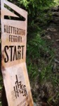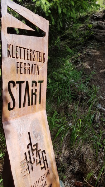 Von Meran fahren wir mit dem Bus nach Falzeben. Von hier führt eine Umlaufbahn nach oben. Von der Bergstation folgt man dem Wanderweg, der nach kurzer Zeit links in den Klettersteig führt. Von Klettersteig ist aber zunächst nichts zu sehen. Es geht den bewaldeten Weg noch etwa 45 Minuten bis an den Einstieg am Fels.
